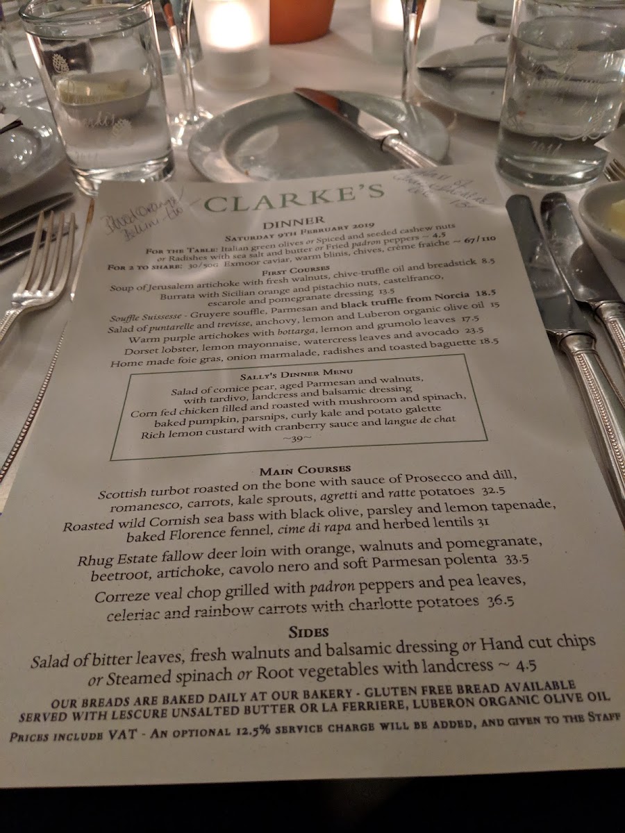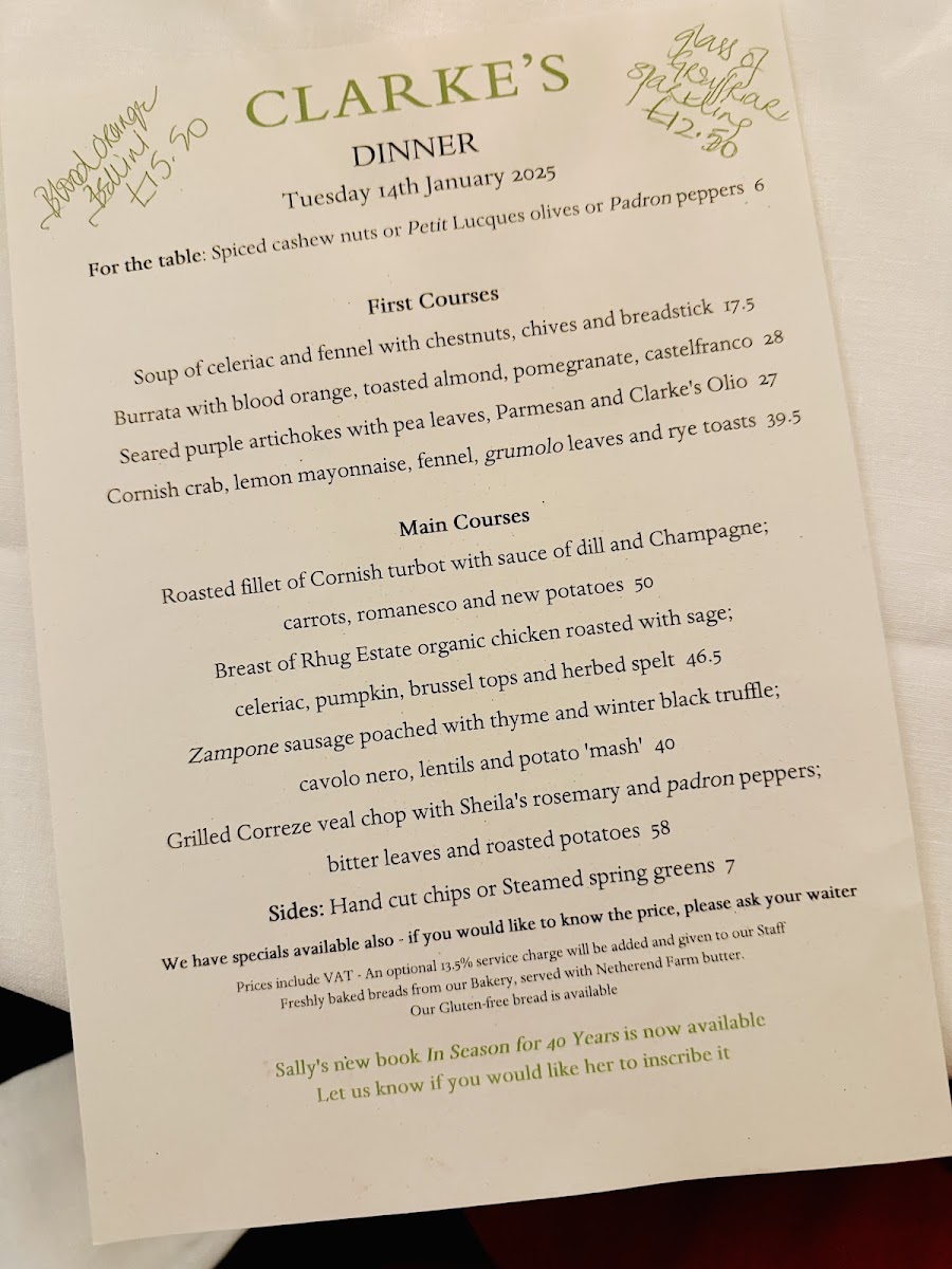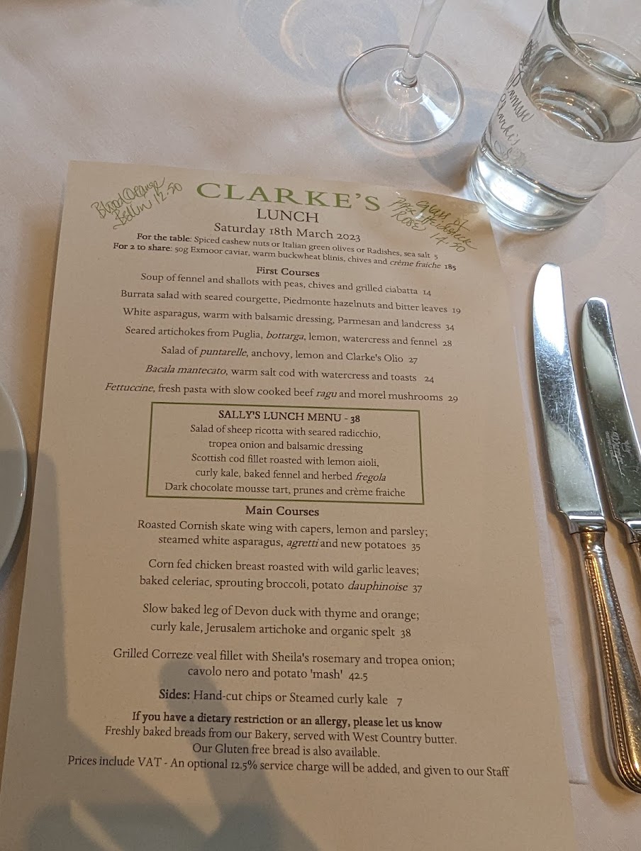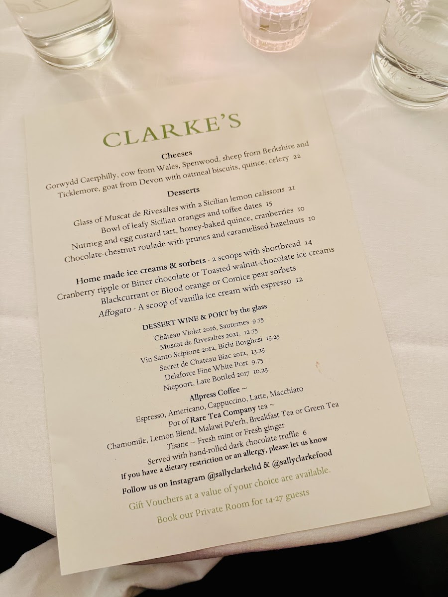 Clarke’s Restaurant at 124 Kensington Church St feels like the kind of place where the menu quietly does the heavy lifting-confident, comforting, and built around crowd-pleasing classics. On the savoury side, the selection reads like a love letter to rich, hearty flavours: Chicken, Mushroom, and Leek Pie delivers that familiar, cosy satisfaction, while Beef Wellington adds a more celebratory, indulgent touch. If you’re leaning vegetarian, there’s plenty to enjoy too, from Goat’s Cheese, Red Pepper, and Spinach to the earthy depth of Gruyere, Mushroom, and Spinach, plus the bright, Italian-leaning Tomato, Basil, and Parmesan. The bakery offering keeps things grounded and generous-perfect for sharing or taking home-especially the Raisin, Rosemary, and Sea Salt Paysanne Bloomer, Pugliese Sourdough Bloomer, and Sourdough Granary Bloomer, alongside lighter bites like Focaccia and Oatmeal Biscuits. To finish, the sweet options strike a satisfying balance between elegance and comfort, from Chocolate and Almond Cake and Lemon and Almond Tart to more playful treats like Dark Chocolate Truffles, Chocolate Chip Cookies, and Gingernut Cookies-altogether leaving you with the impression of a menu that’s simple on the surface, but carefully composed to please from first bite to last.